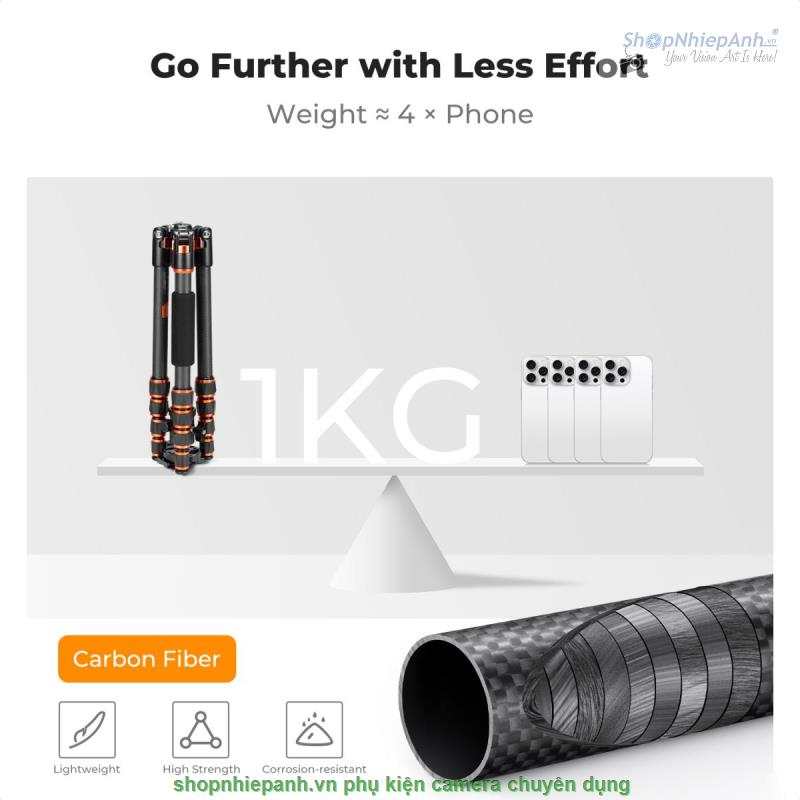 * Vật liệu Carbon cao cấp sợi carbon của ngành sản xuất hàng không vũ trụ được áp dụng, giúp chân máy cứng hơn, chắc hơn và ổn định hơn; Đồng thời, khả năng chống ăn mòn và chống mài mòn cũng được cải thiện. Hơn nữa, trọng lượng của chân máy này chỉ 1KG, phá vỡ đáng kể giới hạn trọng lượng của chân máy truyền thống. Nó có thể dễ dàng theo chân nhiếp ảnh gia đến những môi trường đặc biệt hơn, chẳng hạn như núi, sa mạc, vùng hoang dã, v.v. và khám phá những cảnh đẹp chưa từng thấy trước đây.