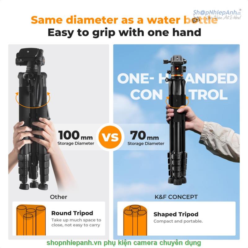 Với kích thước gấp gọn chỉ 48 cm, kéo tối đa 190cm, chân máy rất dễ mang theo, lý tưởng cho du lịch, chụp ảnh ngoài trời và sử dụng chuyên nghiệp, ngay cả trên địa hình gồ ghề.